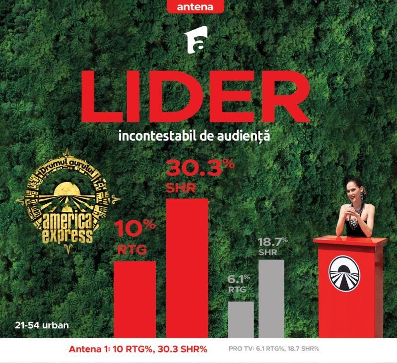 Premiera America Express - Drumul Aurului a adus cel mai bun start din cele 5 sezoane pentru cel mai dur show de aventură din România şi o poziţie de lider în Prime Time pentru Antena 1.