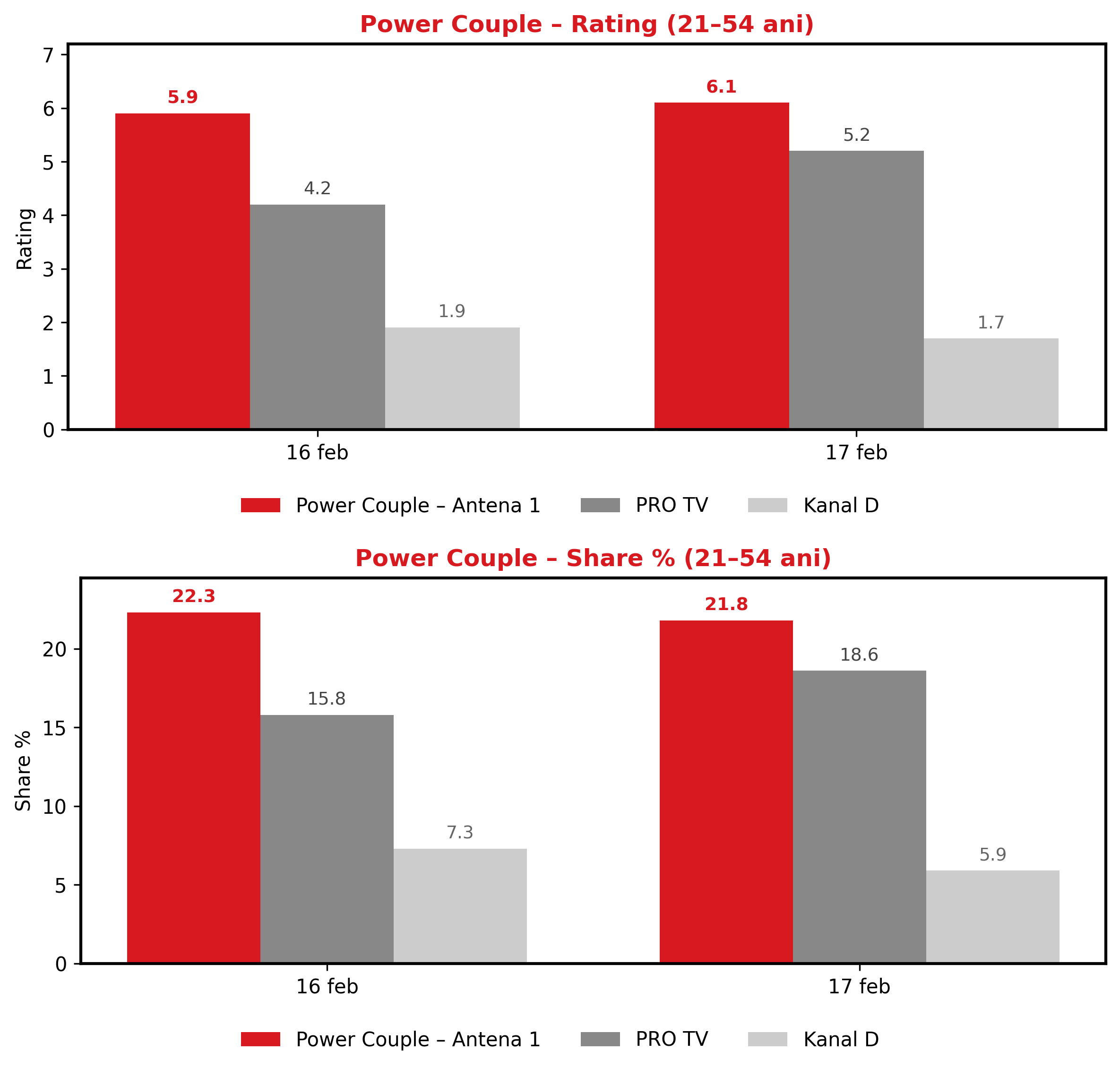 Antena vs restul lumii! Power Couple, lider autoritar în Prime Time!
