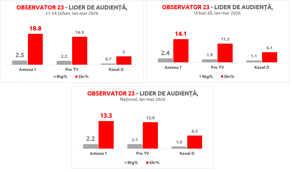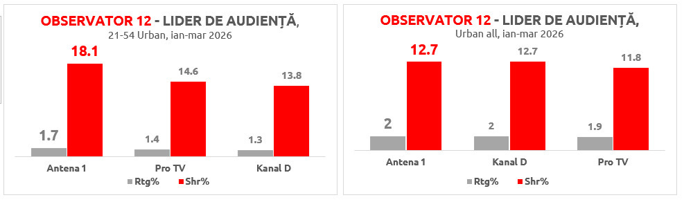 Programele Observator, pe primul loc în topul audienţelor în 2026