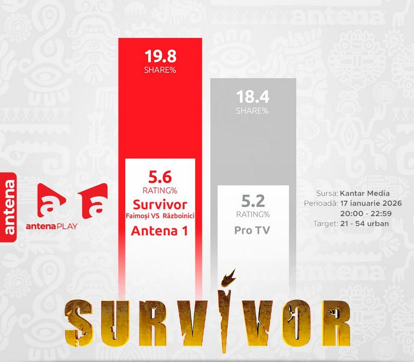 Power Couple şi Survivor, la înălţime! Ediţii cu leadership de audienţă la început de 2026!