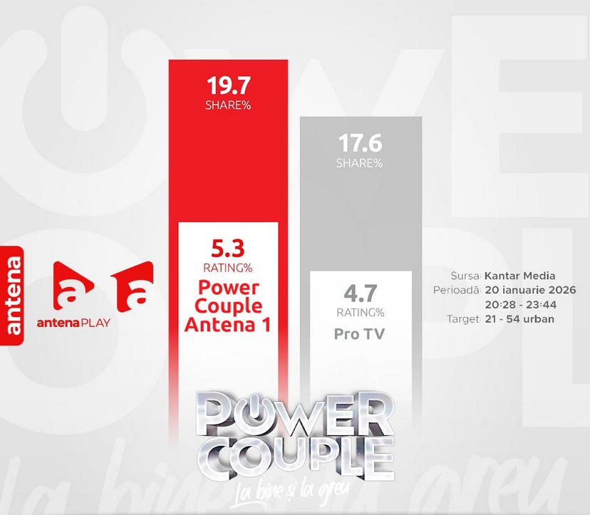 Power Couple, din nou lider de audienţă în Prime Time