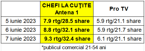 Chefi la Cuţite se apropie de marea finală. Emisiunea rămâne pe primul loc în topul audienţelor